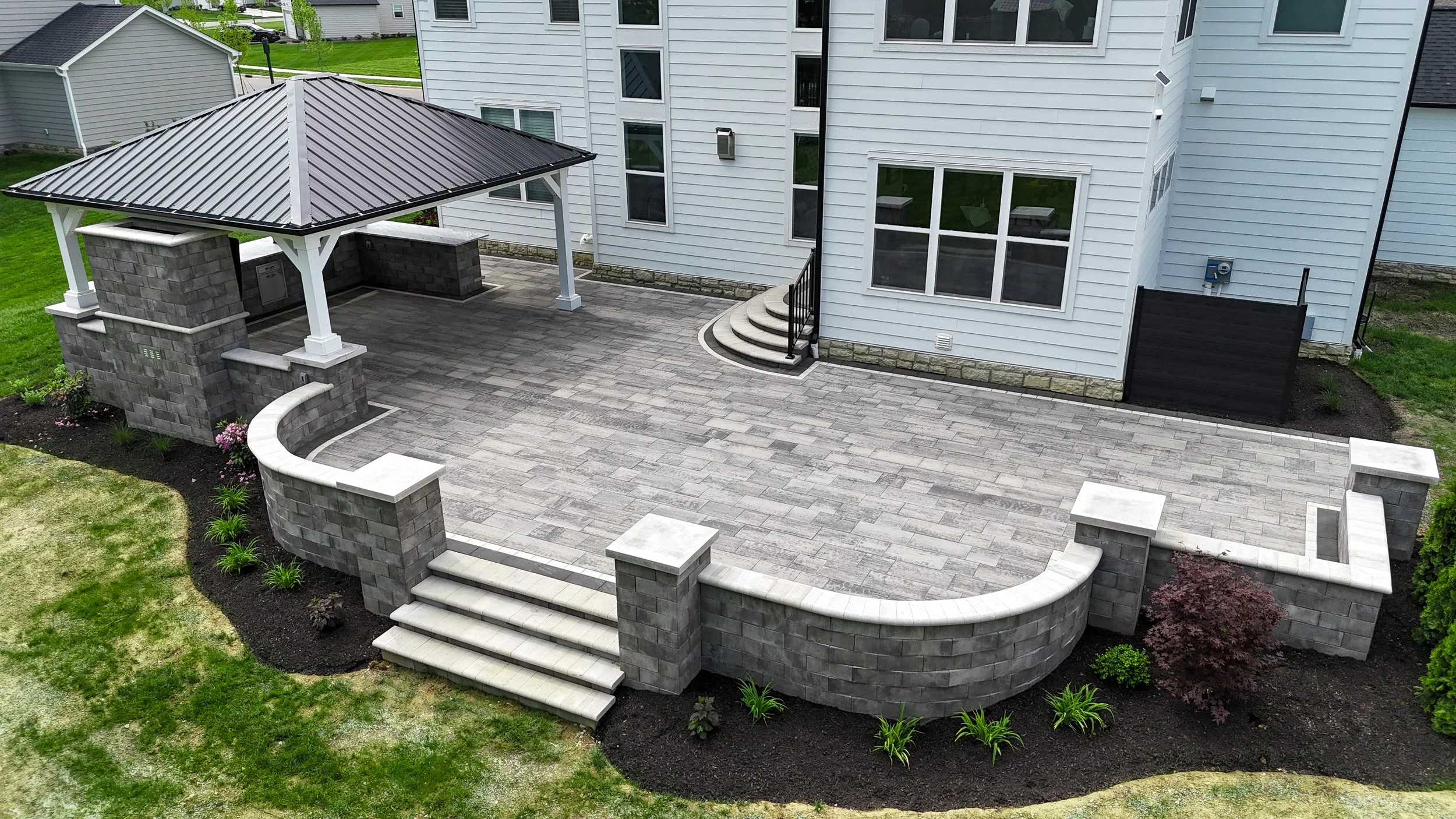 We provide full-service outdoor design and installation for homeowners in Marysville, Ohio and surrounding Central Ohio communities. Our specialties include custom paver patios, outdoor kitchens, pergolas & pavilions, fire features, water features, landscaping, outdoor lighting, and more — all tailored to your space and lifestyle.